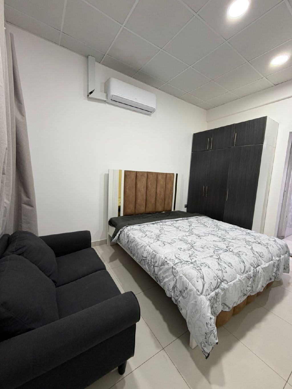 For monthly rent in Ajman First occupancy furnished studio apartment with hotel - style furnishings in Al Al Mwaihat 2, near the Dubai and Sharjah exit rent AED3000 including utilities Refundable AED500 security deposit