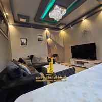 VIP bedroom and living room for monthly rent in Ajman, Al - Warent Tower. fully furnished. rent includes utilities, internet, and parking. Located near the entrances to Dubai and Sharjah. Excellent monthly rent