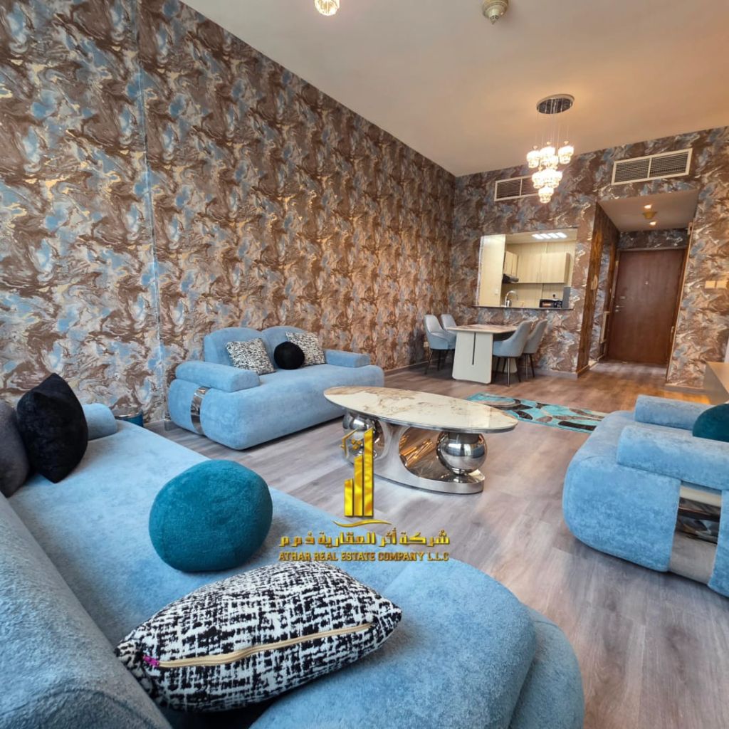 VIP one - bedroom apartment with a sea view for monthly rent in Ajman One Tower, near the Corniche. fully furnished. rent includes utilities, internet, and parking. Located near the entrances to Dubai and Sharjah. Excellent monthly rent