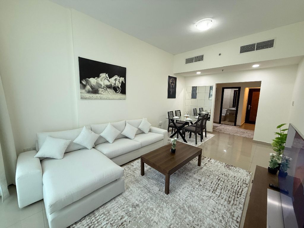 Furnished 1BHK for monthly rent - Ajman Corniche Second occupant Al Nakheel 2 - Etihad Tower, opposite Bahy Palace & Fairmont Very clean furniture - first tenant rent includes all bills electricity, water, internet, sewage, parking Large space master bedroom, 2 bathrooms, separate kitchen, big living room Full sea view rent AED6000/ month Refundable deposit AED1000 Av