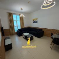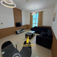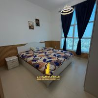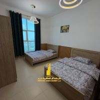 Two bedrooms and a living room in City Tower, Ajman, super deluxe, overlooking the Ruler's Palace. Furnished, available for monthly rent, including utilities, internet, and parking. Contact