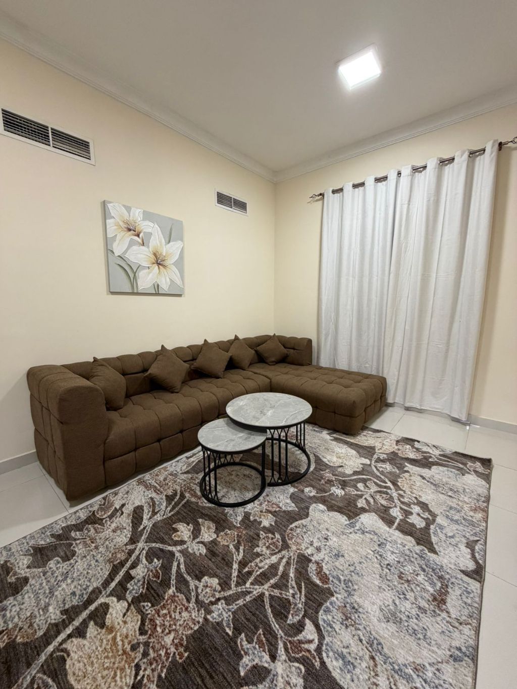 One bedroom and living room with balcony for monthly rent in Ajman, Al Al Mwaihat 2. fully furnished, at a great price rent includes utilities, internet, and parking. Prime and quiet location near the entrances to Dubai and Sharjah. Contact