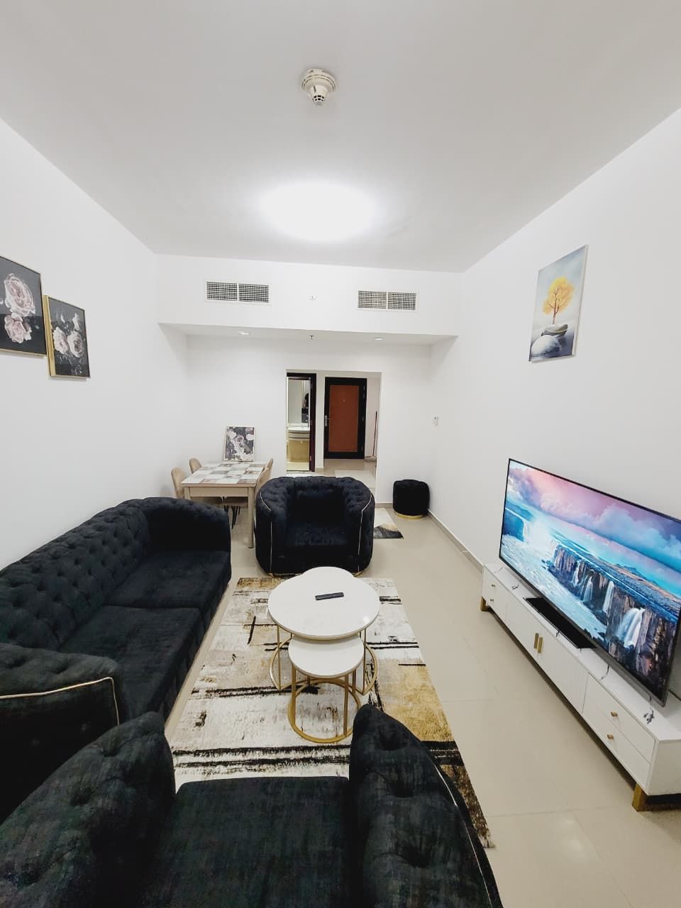 One bedroom and living room, first occupancy, Ajman Corniche, furnished, sea view. Corniche opposite Bahi Palace, easy access to Sharjah and Dubai. Price AED5500, AED500 refundable deposit