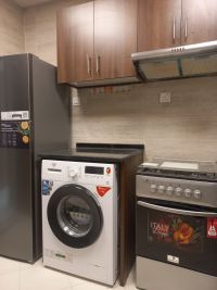 Furnished one - bedroom apartment for monthly rent in Ajman Rashidiya Oasis Towers 1 The tower features a gym, swimming pool, garden, mosque, and parking. All services, restaurants, cafes, and a bus station are located below the tower. All bills, internet, and parking are included. Refundable security deposit of AED1000 upon departure. Located on Al Mina Street. Near Al Ittihad Street and City Centre