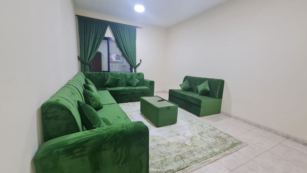Furnished apartment for rent in Ajman, Al Al Nuaimia, in a prime location opposite Thumbay Hospital, behind Giftway, and next to Nesto Industrial. The apartment features 2 bedrooms, living room, balcony, 2 bathrooms, and clean furniture with central AC. monthly rent AED4500, including all bills, internet, and maintenance (gas excluded)