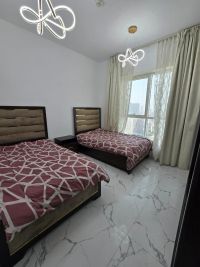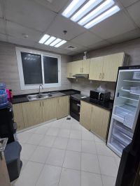 Two - bedroom apartment with a living room, gym, and swimming pool in Ajman, Rashidiya 1 - Al Waha Tower, with a balcony offering sea views. fully furnished, available for monthly rent at a special price Includes utilities, internet, and parking. Prime location with convenient access to all amenities for comfortable living. Fully equipped kitchen Central air conditioning + high - speed internet Contact