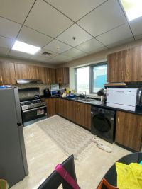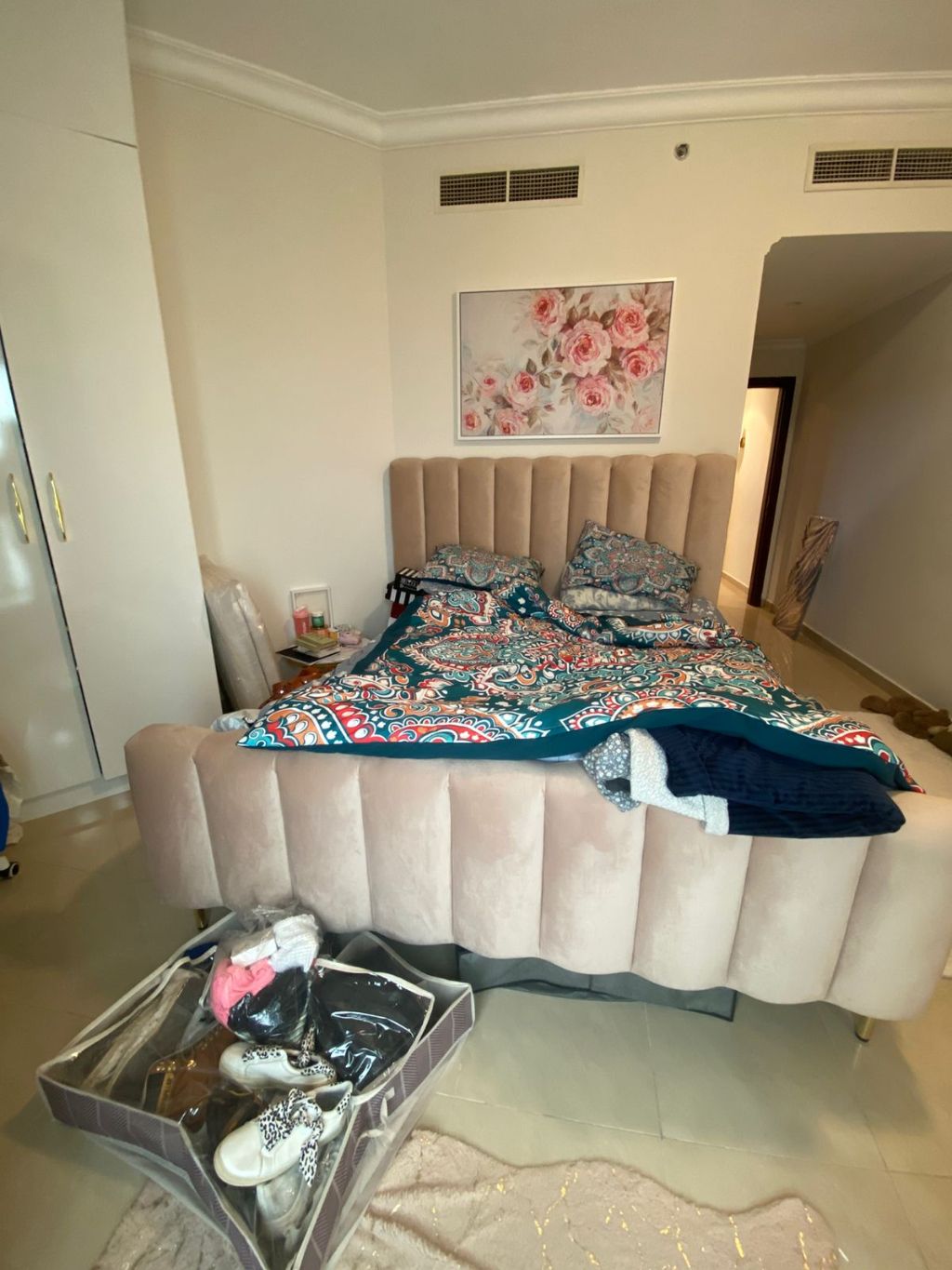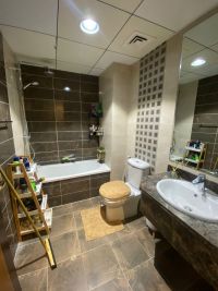 For monthly rent, an apartment in Bonker Tower consisting of two bedrooms and a living room with three bathrooms and a balcony. Spacious area with excellent furniture and central air conditioning. Located on Sheikh Mohammed bin Rashid Street and close to Al Ittihad Street. A prime location close to services and facilities, suitable for families looking for comfortable housing in a lively area