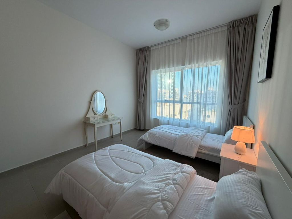 Fully furnished 2 - Bedroom Apartment for rent - Corniche Ajman, Al Nakheel 2 Features First - time tenant - brand new, very clean furniture Opposite Bahi Palace Hotel Ajman and Fairmont Spacious layout Master bedroom + 3 bathrooms + large living room + separate kitchen Stunning sea view All bills included electricity, water, internet, sewage, and parking Price AED7000 per month Special offer