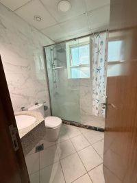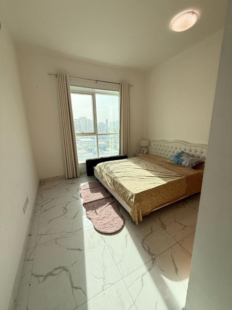 For annual rent in Rashidiya 1 - Al Waha Tower, an apartment with two bedrooms, a hall, 2 external bathrooms, and two balconies with an open view of the pool. Includes private parking. Size 1538 SqFt. Annual rent AED50000 with payment in 4 installments only