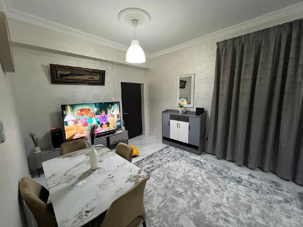 One bedroom and living room in Ajman, Al Jerf 2 Opposite Al Aqsa School, first occupancy, two bathrooms with full amenities. Price AED4500 (bills and internet included) Security deposit AED1000 cash. Available on the 6th of the month. Central air conditioning. Clean and fully furnished