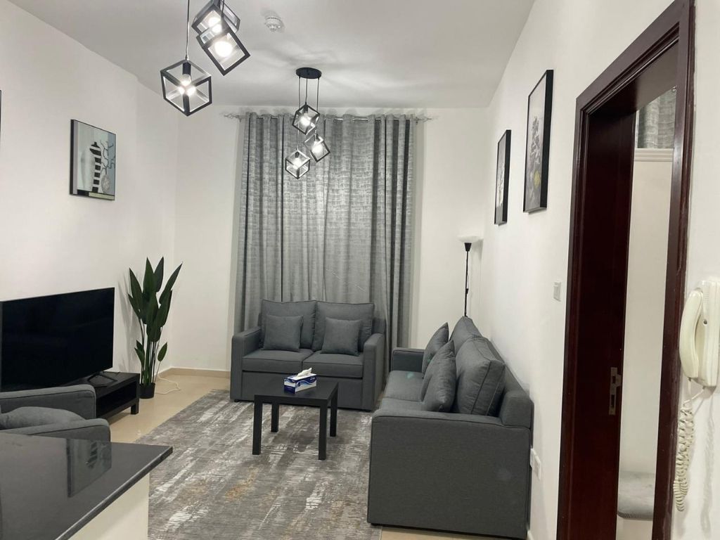 Monthly furnished 1 - bedroom apartment for rent in City Tower, Ajman, featuring very clean and well - arranged furniture with a comfortable layout suitable for individuals or families. The apartment includes a master bedroom, 2 bathrooms, a spacious living room, and a fully equipped kitchen, along with a dedicated parking space. Located in a prime area in the heart of Ajman with easy access to all