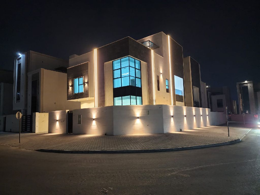 Corner Villa for sale - Al Helio 2, Ajman Prime location on two roads, near Sheikh Mohammed Bin Zayed City Road 6 Master Bedrooms + Majlis + 2 Living Halls Main Kitchen + Prep Kitchen Rooftop + Yard + Parking Central AC Land 3014 SqFt. BUA 4028 SqFt. AED1900000 Inclusive of registration & ownership fees