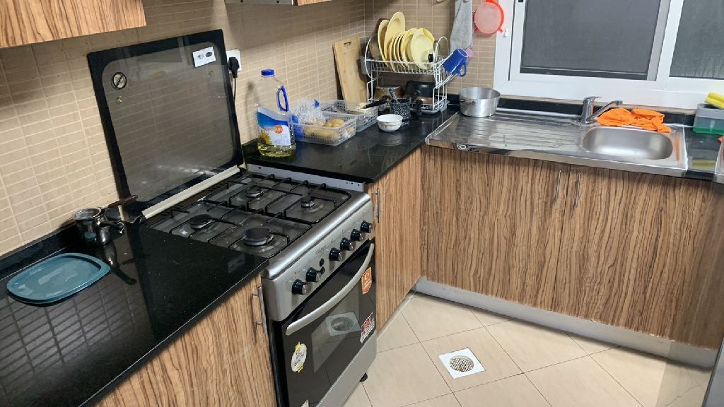 3 غرف مقفولين (2 نوم وصالة) ومطبخ مقفول كامل مع الاجهزة مع 2 حمام بالسيتي تاور السعر 40 ألف سنوي والتأمين شيك السعر شامل الاجهزة والعفش