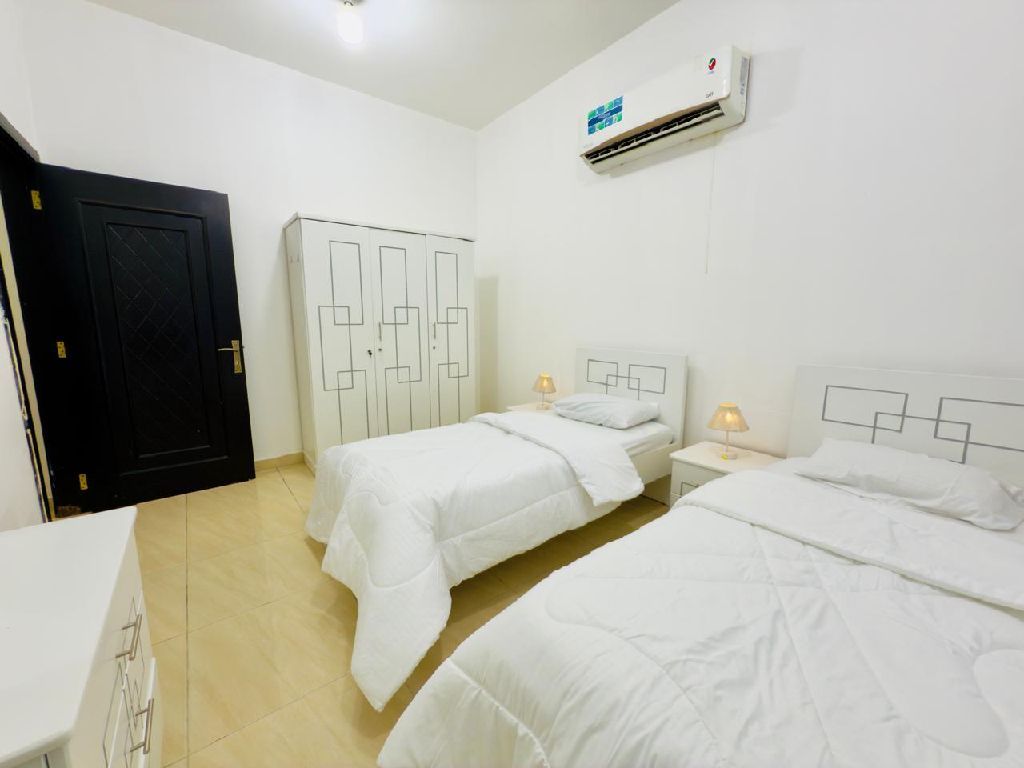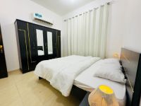 Two bedrooms and a living room for monthly rent in Ajman, Al Al Mwaihat area. fully furnished with clean and tidy furniture, offering a luxurious and elegant living space. Features include central air conditioning, a separate kitchen, and two bathrooms. The building is very clean and located in a vibrant area near the Saudi German Hospital. easy access to Dubai, Sharjah, and Sheikh Mohammed Bin Zaye