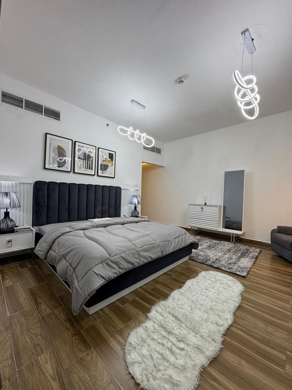 غرفة وصالة مفروشة للإيجار ممشى عجمان اطلالة بحرية بالكامل أول ساكن لوأرا 1 برج Star 1 مقابل/ ميناء عجمان فرش / مودرن عصري جديد بالكامل "وسعر شامل جميع الفواتير كهرباء ومياه وانترنت وصرف صحي والموقف وجيم