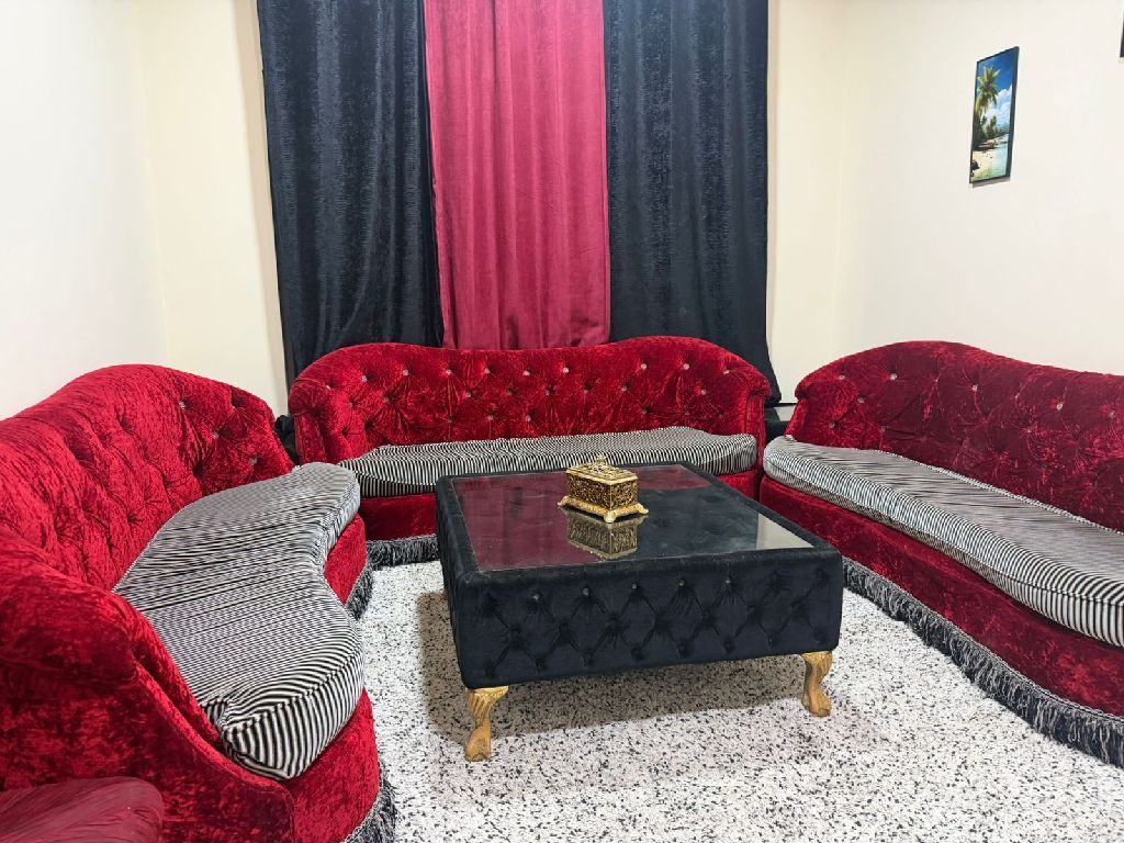 A very clean, furnished room, a hall, and two bathrooms in the Pearl Towers in Rashidiya 1. It has a balcony, two bathrooms, and is fully equipped. Security and services are available 2424 hours next to the towers and a garden. AED3600 is required and a deposit of 500 dirhams is required. For inspection and inquiries, please contact us