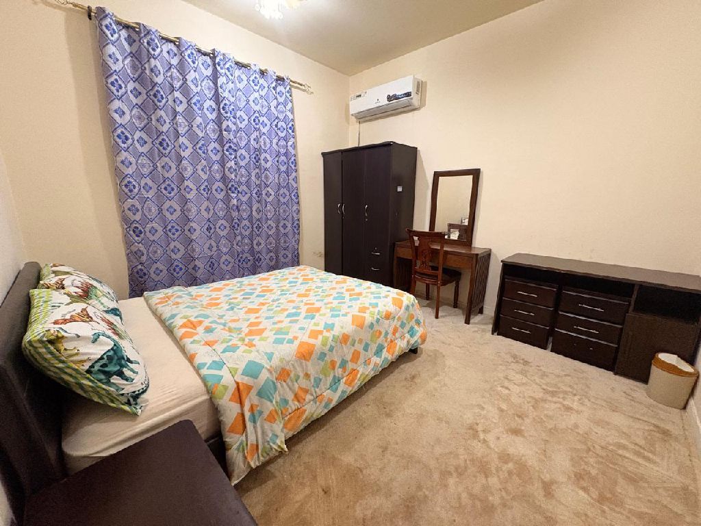 Cheapest price for a furnished one - bedroom apartment (1BHK) for monthly rent in Ajman Emirate Rashidiya 1, close to all services, restaurants, cafés, and a bus station Spacious ground parking available. rent includes all bills, internet, and parking. rent AED3200 Refundable deposit AED500 (returned