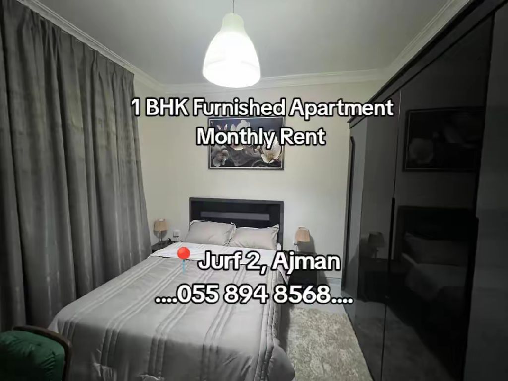 One bedroom and living room with two bathrooms, first occupancy, Al Jarf 2, opposite Al - Aqsa School, with all amenities included. rent is 4500 Dirhams. Security deposit of 500. available now