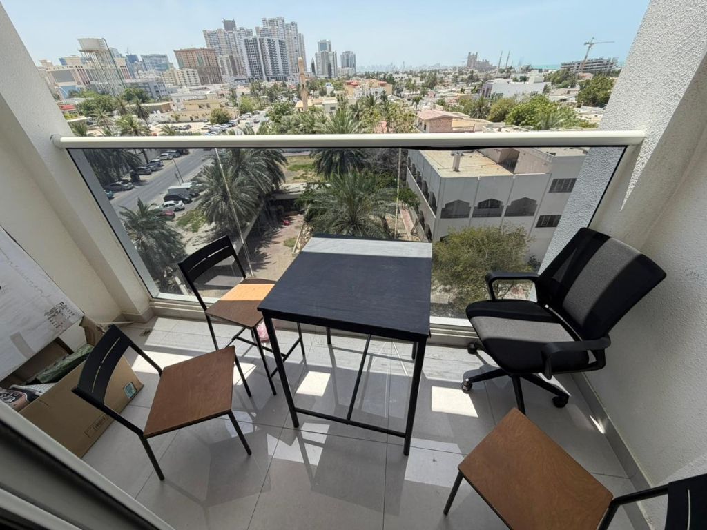 One - bedroom apartment for monthly rent in Ajman Corniche, a vibrant and touristy location near the Ship Roundabout, behind Thimar Al Bahar Restaurant. fully furnished with brand new furniture. Features include one bedroom, living room, two bathrooms, master bedroom, balcony, and two central air conditioning units. rent is AED4000 per month, inclusive of all bills, internet, and maintenance (excluding
