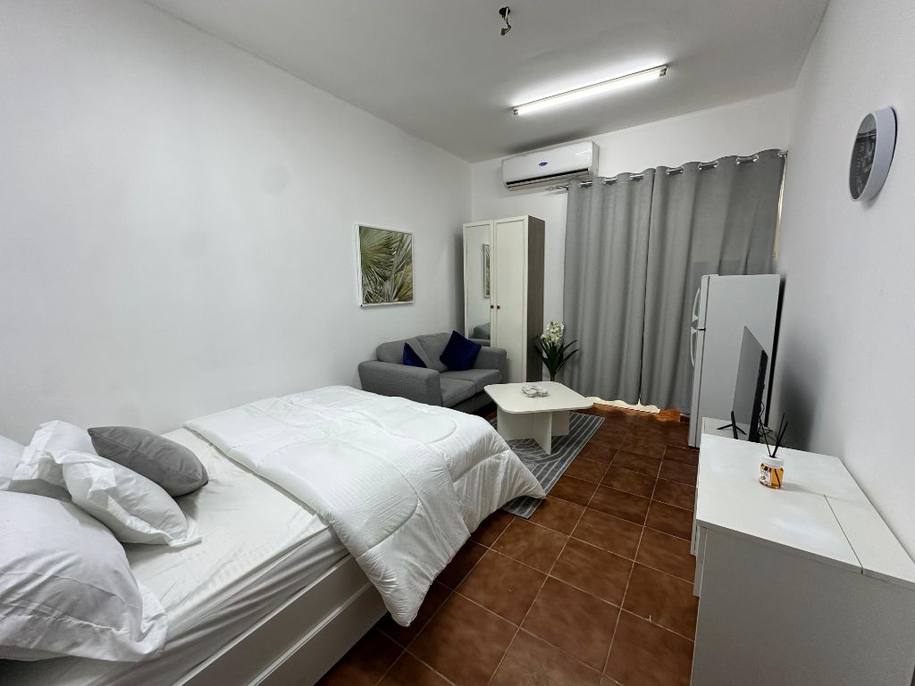 Fully furnished studio apartment with a spacious area and a semi - separate kitchen, available for monthly rent in Ajman, Al Rawda area - Al Salam Street. rent is AED2500, inclusive of all bills and internet. Strategically located in a vibrant area close to all services, with easy access to Dubai and Sharjah