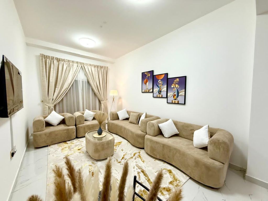 Furnished apartment for rent, two bedrooms and a living room, brand new furniture (first tenant) located in Al Al Nuaimia 1 on Sheikh Khalifa Street. Prime location near Ramez Mall and Al Ain Hotel, with easy access to Dubai and Sharjah. The apartment includes two bedrooms, a living room, 2 bathrooms, and a balcony. Clean and ready to move in. Price AED5000 per month, including bills and internet