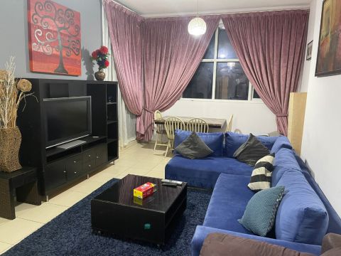 For rent furnished in Ajman, for rent, an apartment, a room, and a hall, furnished, very clean, in Ajman Towers, and a very large area. The price is 5000, including electricity, water, sewage, internet, and parking for the car inside the tower, for contact and inquiries Direct