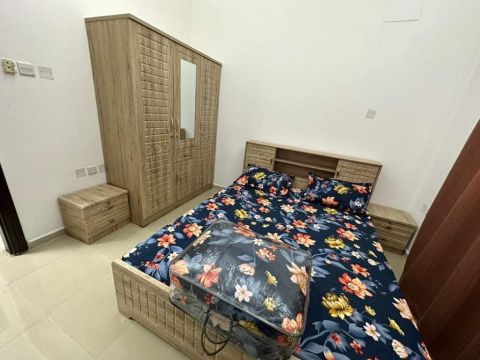 A furnished room and hall, the master bedroom includes all bills, 3500 dirhams + 500 deposit, with parking inside the building, very close to the Ajman Corniche. All services are available around the building, and there is a gym at the bottom of the building