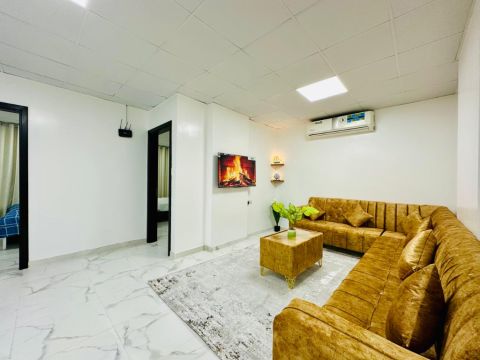 Two - bedroom apartment with a living room for monthly rent, fully furnished In Ajman Mushrif area Behind the General Command Near City Centre Ajman Includes all bills, internet, and sewage monthly rent AED5500 1000 security deposit, refundable upon checkout