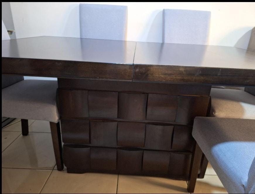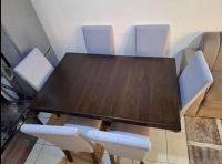 سفرة خشب متين 6 كراسي حجم كبير قالبة للتوسيع، صناعة ماليزية في حالة ممتازة وشبه جديدة، السعر 400 درهم