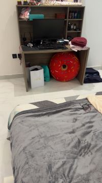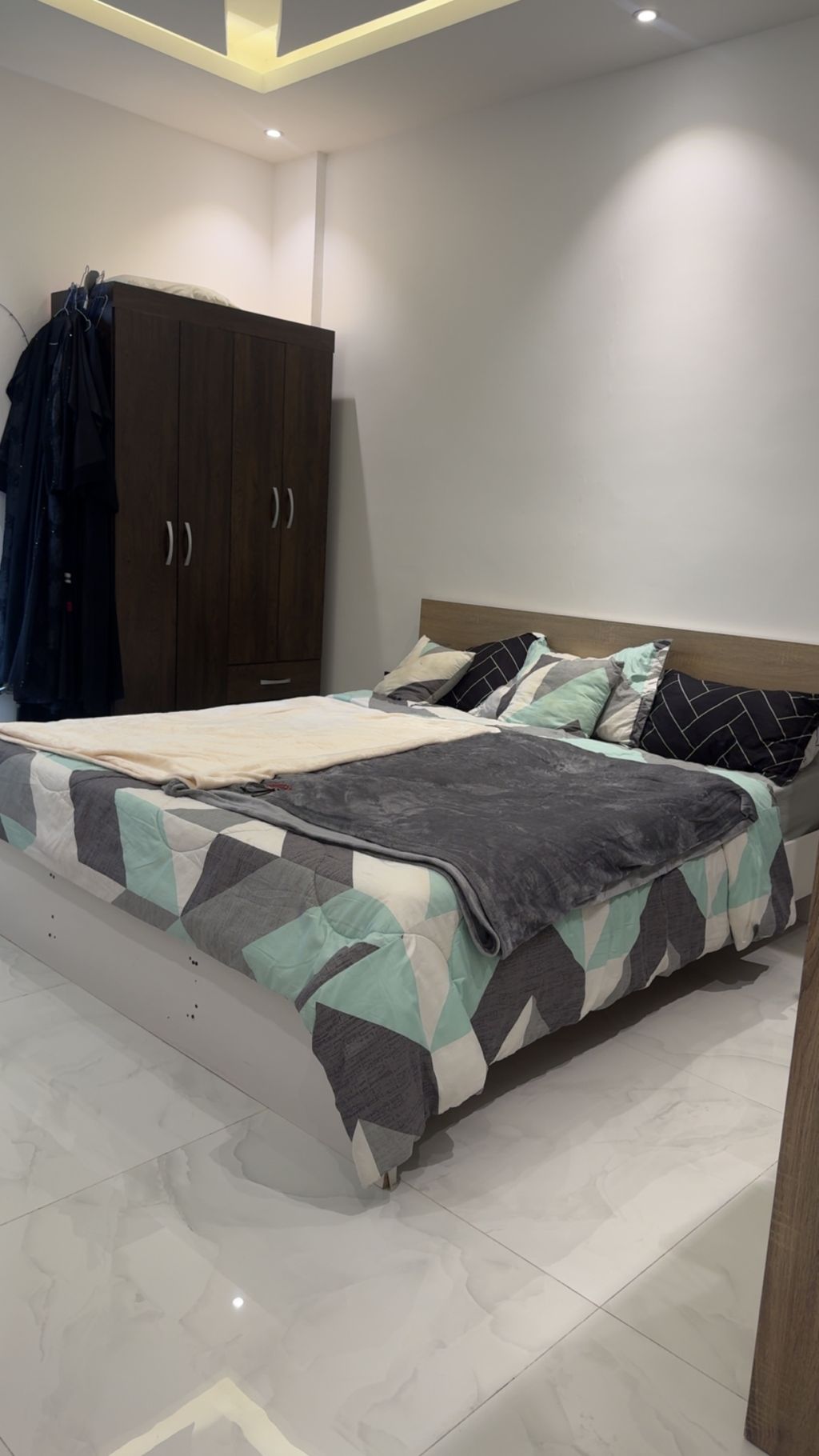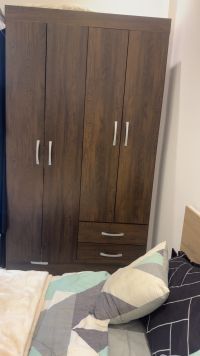 غرفة نوم شبه جديدة تتضمن سرير مقاس 180*200 خزانة ملابس السعر النهائي 500 درهم فقط جاهزة للاستلام فورا