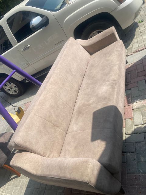 للبيع طقم كنب من 3 قطع وتنتين مفردين وطاولة والسجادة للبيع والمروحة ب 250 الكنب والسجادة ب 40 والمروحة ب 50 درهم قابل للتفاوض