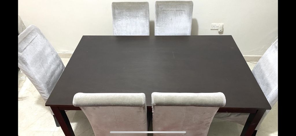 للبيع المستعجل بسبب النقل لشقة أصغر طاولة طعام مع ستة كراسي بحالة ممتازة للبيع العاجل موجودة في عجمان الحميدية