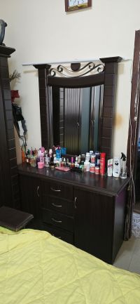 للبيع بسبب الانتقال الى شقة صغيرة، السعر 900 درهم فقط غرفة نوم مستعملة في عجمان مع كافة الملحقات تخت كبير بدون مرتبة مع خزانة كبيرة وكوميدينوا عدد 2 وتسريحة (للعلم الخزانة فيها مرايا يتم تركيبها اختياري للوجه بمرايا أو بدون مرايا)