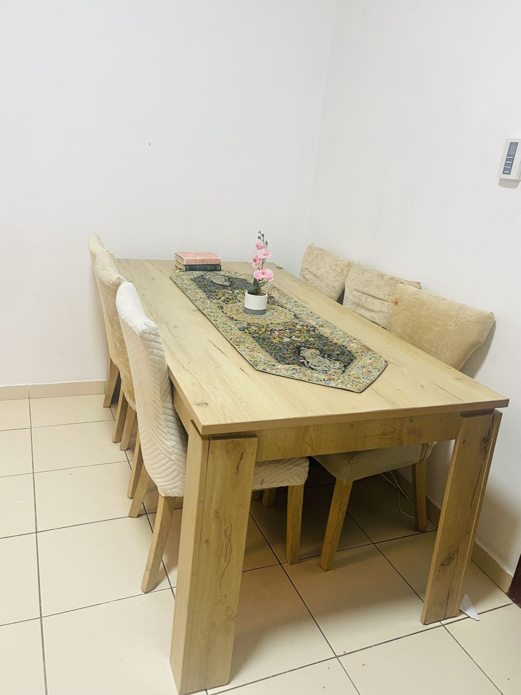 للبيع طاولة سفرة 6 كراسي - Pan Emirates للبيع طاولة سفرة من Pan Emirates بحالة ممتازة جدا، استخدام خفيف ونظيف. النوع طاولة سفرة + 6 كراسي - السعر الأصلي 1600 درهم - سعر البيع 600 درهم فقط المكان عجمان النعيمية مقابل مدرسة الحكمة الحالة جيدة