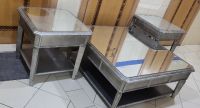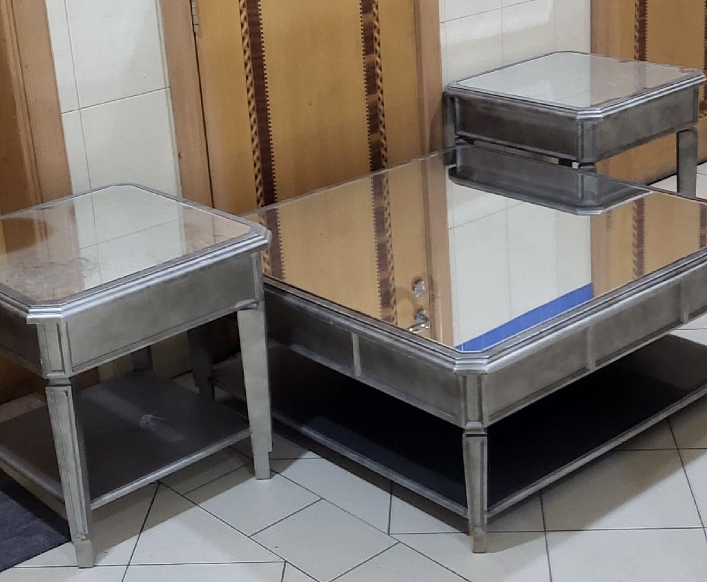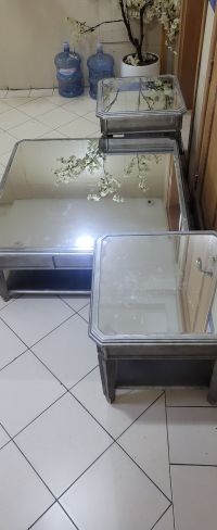 للبيع 3 طاولات وسط خشب فاخر من فوق زجاج مرايا لون الطاولات الخشب جريه (رصاصي غامق) العنوان عجمان الكورنيش