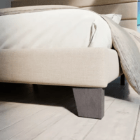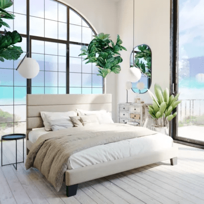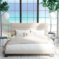 Elison Platform Bed with Fabric Upholstered Headboard & Wooden Slats - Modern Minimalist Design