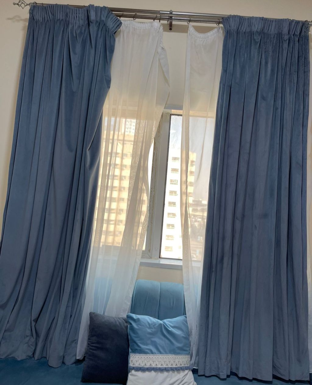 ستارة مخمليه طبقتين (طبقة مخمل + طبقة شيفون) بحالة ممتازة واستعمال خفيف وارتفاع 2.25 متر وعرض 4.3 متر السعر 125 درهم فقط لا غير التواجد في عجمان