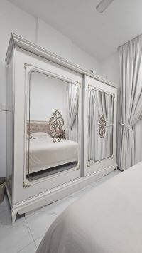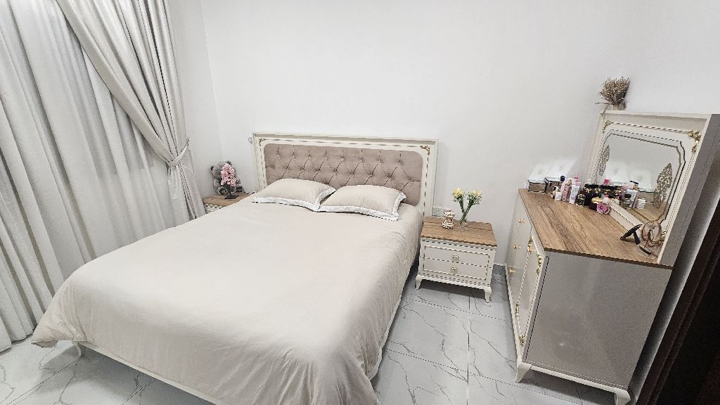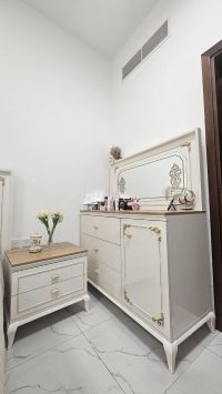 Bedroom set for sale - almost new (used only for 3 months) due to travel. Turkish design from Pan Home, including Bed Large wardrobe Dressing table 2 bedside tables Mattress The set is in excellent condition, almost like new. Original price AED8000 with 2 years warranty. Selling to the highest offer. Location Ajman Contact