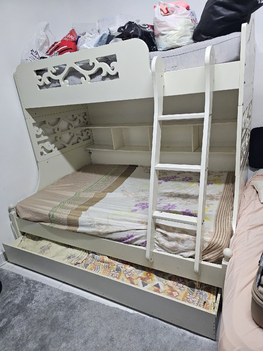Selling a lovely child's bunk bed with storage, perfect for kids aged 2 - 5 years. This bed has been gently used and is in good condition. The white color adds a bright touch to any room, and the storage space is great for keeping toys and clothes organized. Ideal for maximizing space in your child's room, this bunk bed is practical and stylish. Product Specifications Age 2 - 5 years - Condition