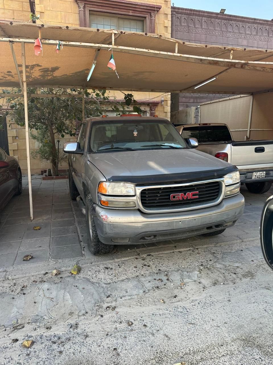 للبيع: سيارة جي إم سي سييرا 1500 4x4 موديل 2002، دفع رباعي شغال، جير ومكينة بحالة جيدة، مكيف شغال، معه إطارات. السعر: 12,000 درهم.