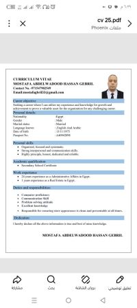 ابحث عن فرصة عمل في مجال الأمن داخل الامارات العربية المتحدة أتمتع بخبرة 2 سنوات في هذا المجال، وأتمتع بمهارات قوية في الحفاظ على النظام والأمن داخل المنشاءات. ابحث عن فرصة للعمل في بيئة احترافية تتيح لي تطوير مهاراتي والمساهمة في الحفاظ على سلامة المكان. لدي قدرة على التعامل مع الزوار والعملاء بمرونة