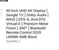 للبيع تلفزيون شاومي 65 انش 4000 بحالة ممتازة الماركة Xiaomi الحجم 65 انش الدقة 4000 UHD النظام Google TV (يوتيوب، نتفلكس، شاهد وغيرها) الصوت Dolby Audio + DTS - X الموديل L65MA - AME (2025) المواصفات صورة واضحة جدا والوان ممتازة تصميم أنيق بدون اطار (Frameless) ريموت بلوتوث ذكي الحالة استعمال شهرين فقط (شبه جديد) بدون أي خدوش أو مشاكل السعر من الآخر 1000 درهم