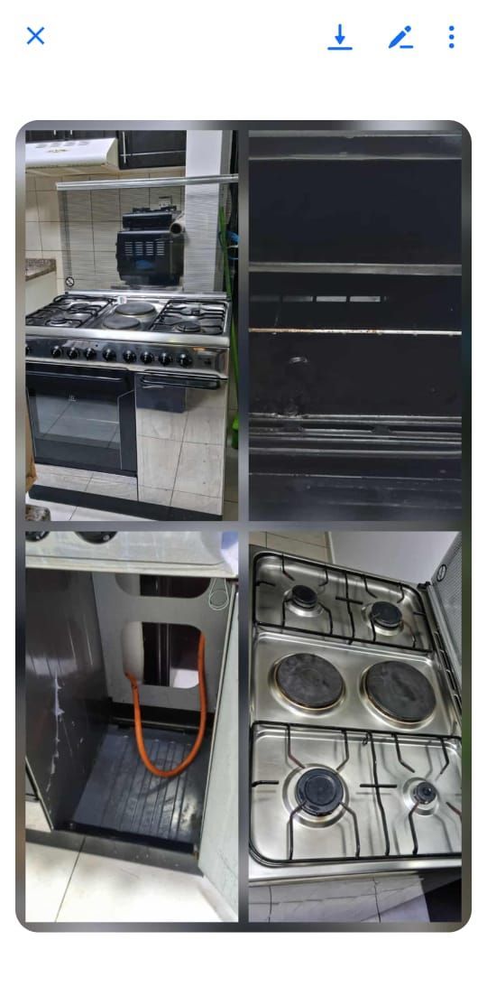 فرن غاز وكهرباء للبيع حالة ممتازة. الفرن الشوي كهرباء فقط. عيون الغاز 2 كهرباء والباقي غاز. مع مكان لقارورة الغاز