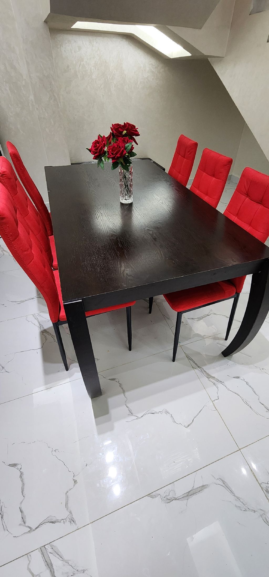 طاولة طعام خشب للبيع مع 6 كراسي شبه جديدة لا خدوش فيها للجادين فقط التواصل على الرقم