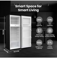 280L Gross/ 225 Net, Double Door Top Mount Refrigerator, 2 Glass Shelves & Bottle Storage Racks, Power Saving R600A Gas, CFC Free, Silent Operation Best for Home, Office - NRF280DN5S1 Dark Grey 574 kW NRF280DN5S1 Dark Grey