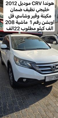 هوندا CRV موديل 2012 خليجي، نظيفة، مع ضمان للمحرك والجير والشاسي. فل أوبشن، رقم 1، ماشية 208 ألف كيلومتر. المطلوب 22 ألف درهم. فيها 3 قطع صبغ فقط تجميلي. أوراق الوكالة ومفتاحين الوكالة لا يزالان موجودين.