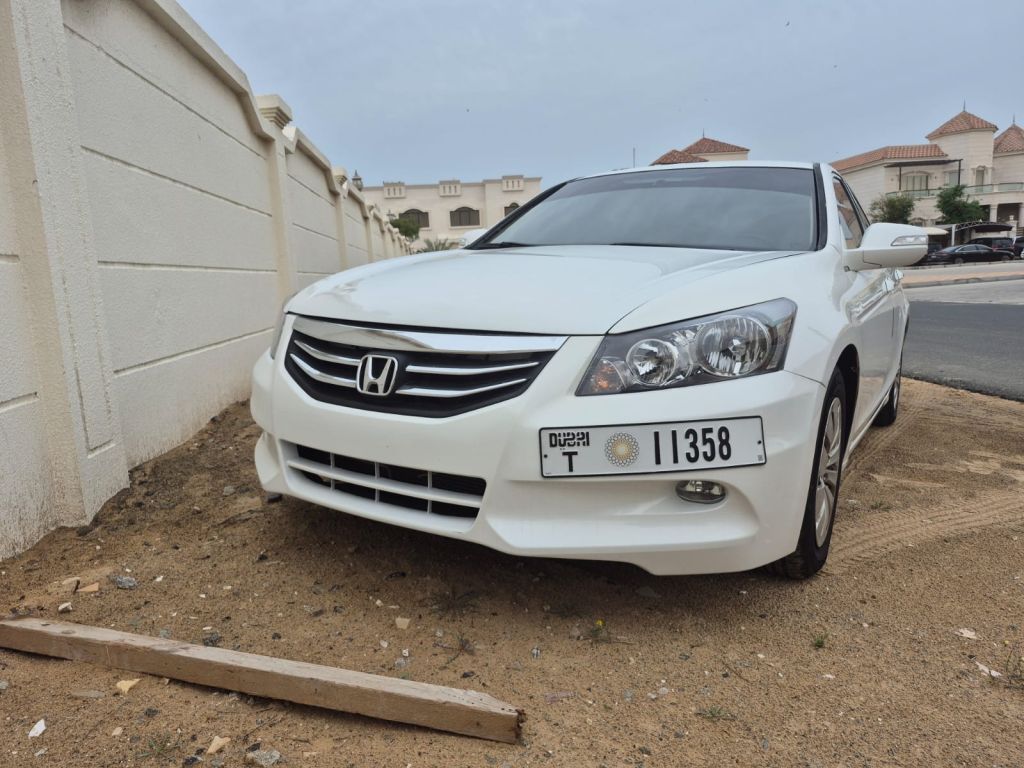 Honda Accord GCC 2012, four-cylinder, clean, with engine, transmission, chassis, and air conditioning warranty. Automatic transmission, owned for one year, mileage 123,000 km. Asking price 13,500 AED.