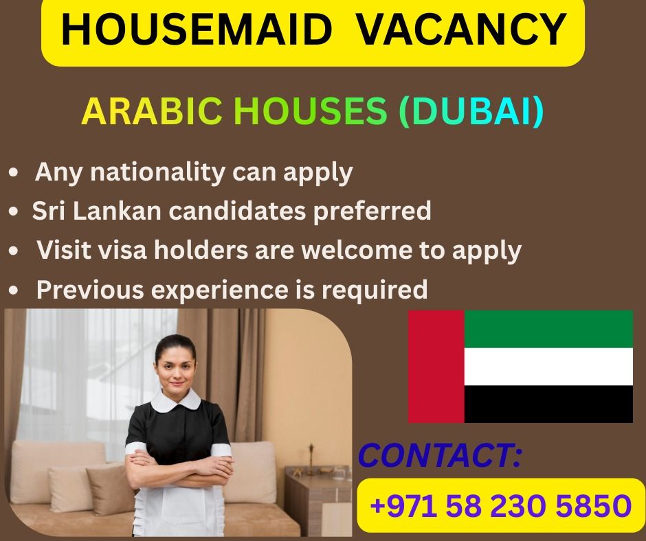 We are urgently hiring Housemaids in Dubai, Ajman city rasheediya 1. House Cooks/ Nannies/ Housekeeping/ cleaning/ baby sitters. with housemaid experience) currently in the UAE in visit or cancelled visas. If you interested. please contact us. any nationality. uganda, ethiyopia, miyanmar