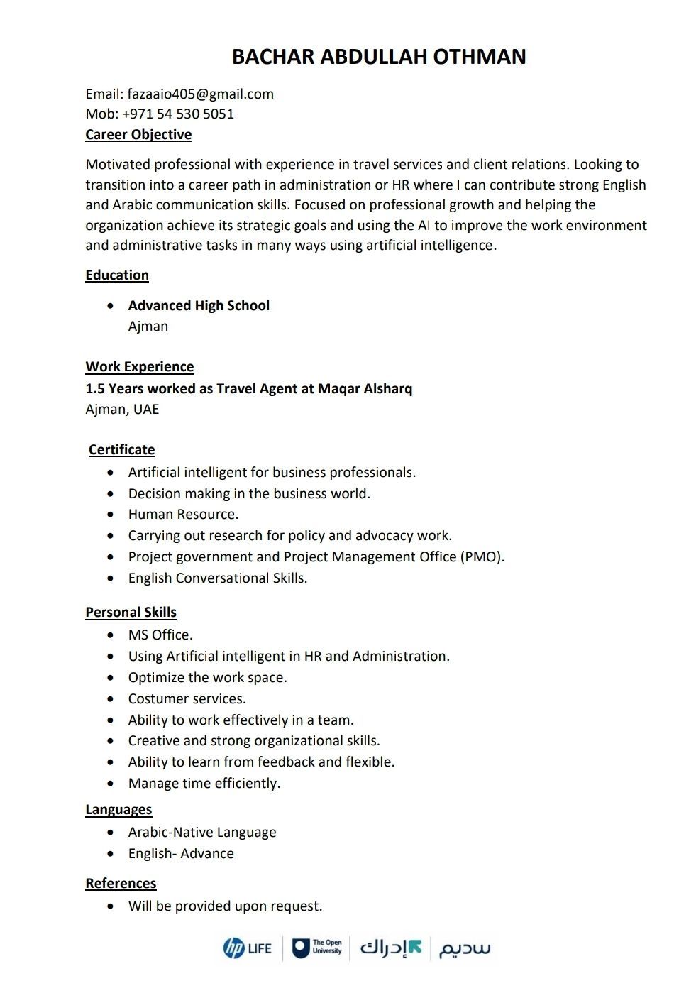 Seeking Work in Human Resources in Ajman Emirate Emirates