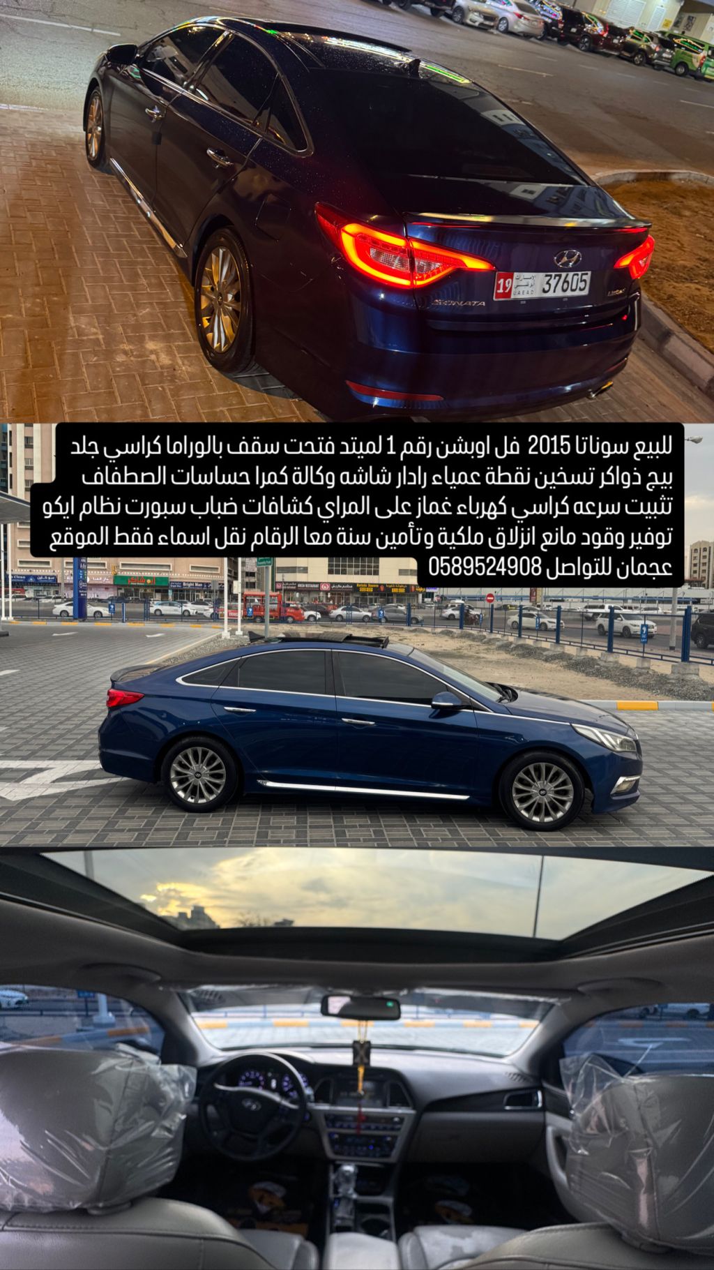 للبيع هيونداي سوناتا 2015، فل أوبشن، رقم 1 لميتد. المواصفات تشمل: فتحة سقف، كراسي جلد بيج مع تسخين وذاكرة، رادار، شاشة وكالة، كاميرا، حساسات الاصطفاف، تثبيت سرعة، كراسي كهربائية، أزرار على المقود، كشافات ضباب، وضع سبورت، نظام إيكو لتوفير الوقود، مانع انزلاق. الملكية والتأمين لمدة سنة. نقل الرقم فقط. الموقع: عجمان.